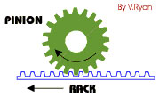 A ‘rack and pinion' gears system looks quite unusual. However, it is still composed of two gears. The ‘pinion' is the normal round gear and the ‘rack' is straight or flat. The ‘rack' has teeth cut in it and they mesh with the teeth of the pinion gear.