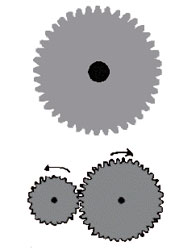 A gear is a modification of the wheel and axle. It just has teeth around it. Like all simple machines , gears may change the direction in which a force is applied; or increase or reduce a force or the distance over which a force is applied.