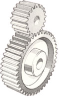 When two spur gears of different sizes mesh together, the larger gear is called a wheel, and the smaller gear is called a pinion . In a simple gear train of two spur gears, the input motion and force are applied to the driver gear . The output motion and force are transmitted by the driven gear . The driver gear rotates the driven gear without slipping.