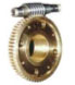 The arrangement of gears seen left is called a worm and wormwheel . The worm, which in this example is brown in colour, only has one tooth but it is like a screw thread. The wormwheel, coloured yellow, is like a normal gear wheel or spur gear. The worm always drives the worm wheel round, it is never the opposite way round as the system tends to lock and jam.